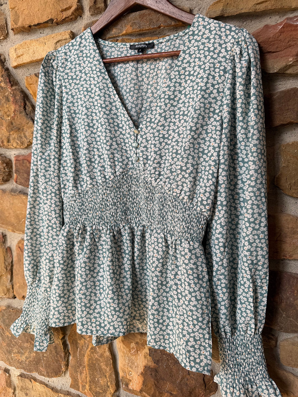 Teal, Floral Long Sleeve Blouse- Sm